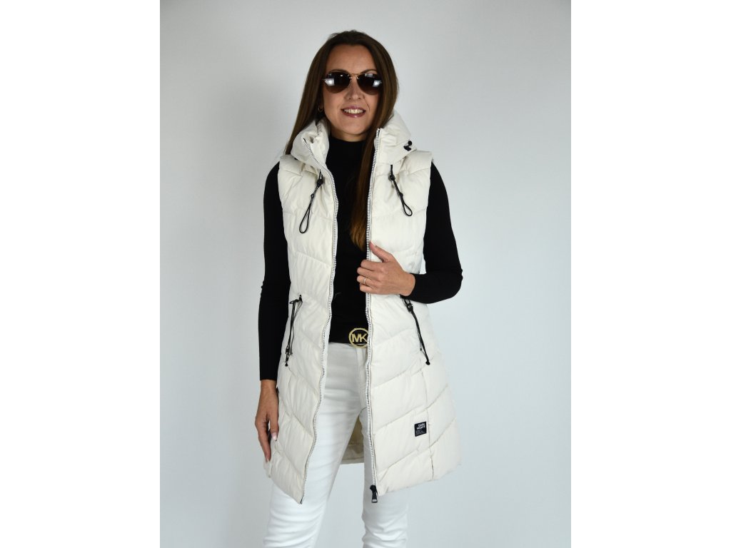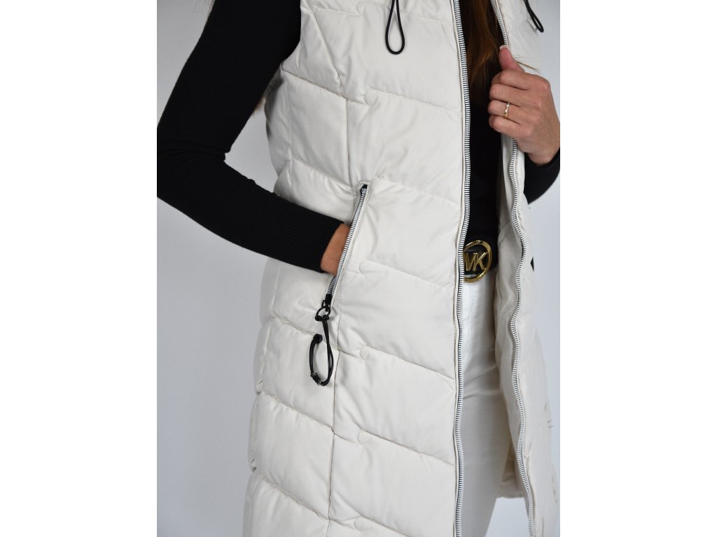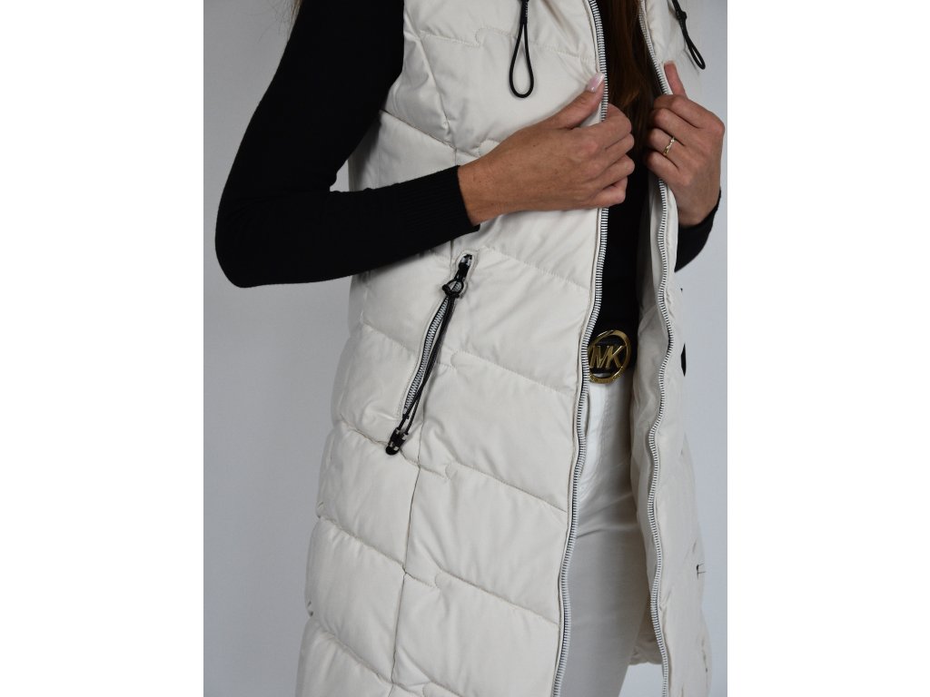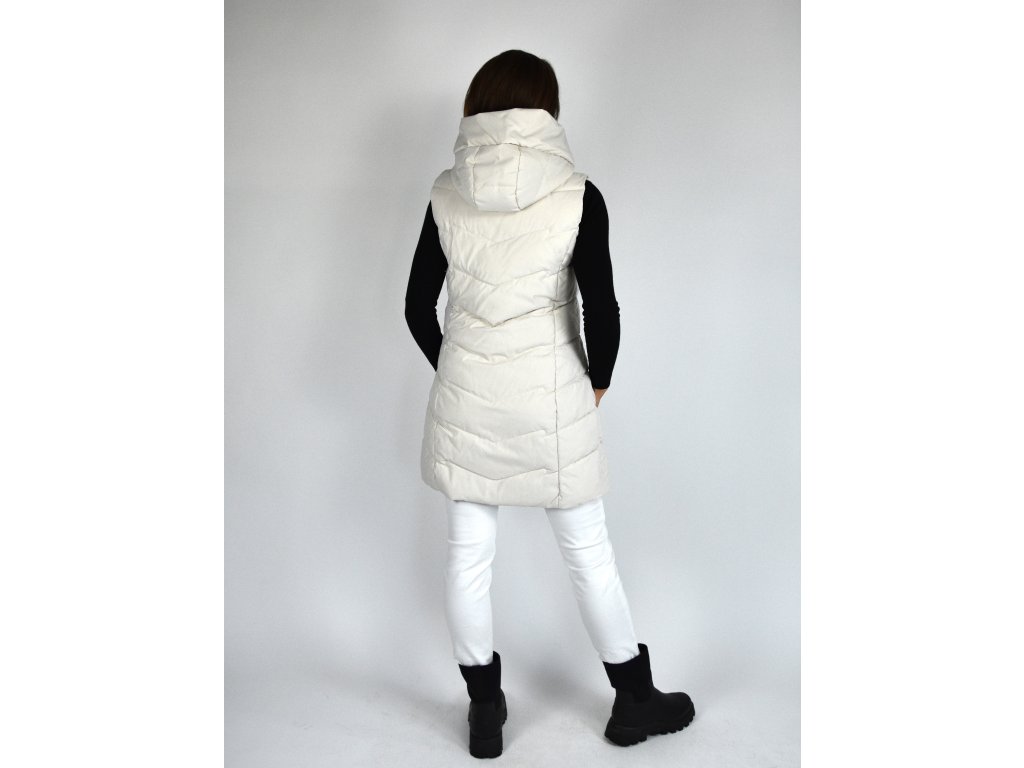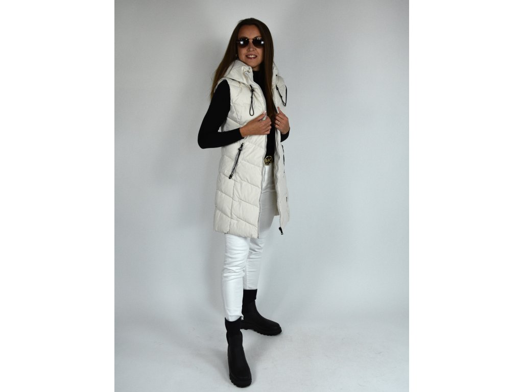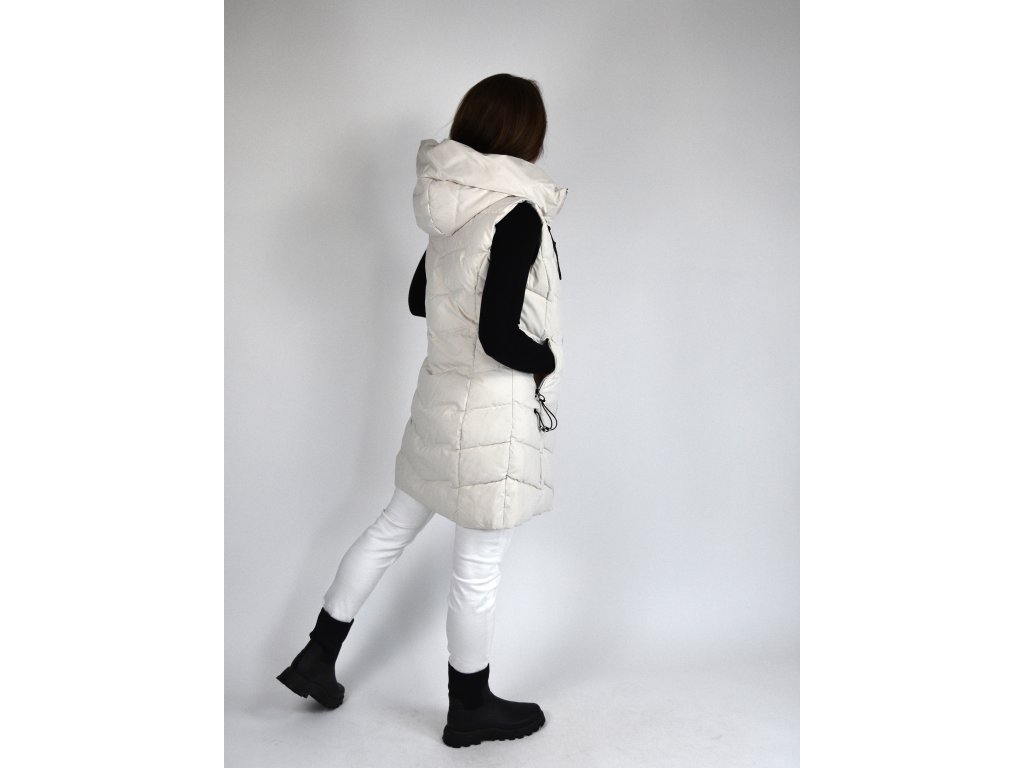 Béžová dlouhá prošívaná vesta s kapucí 48042