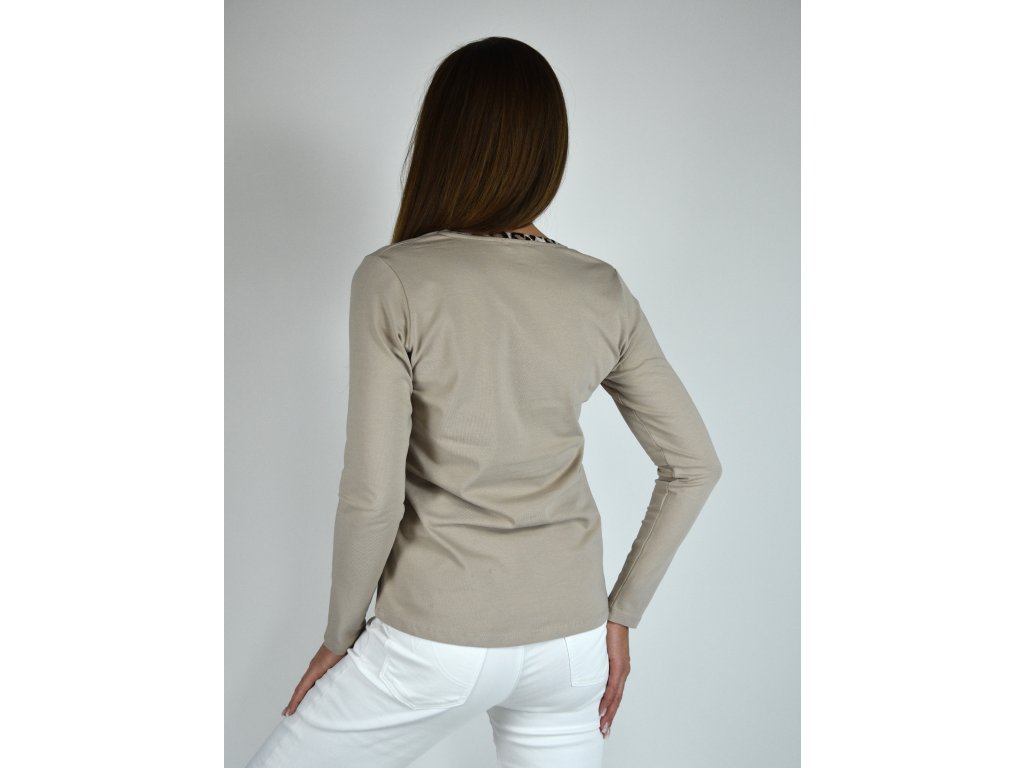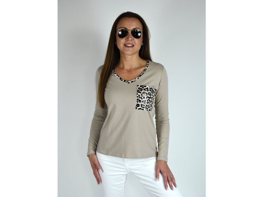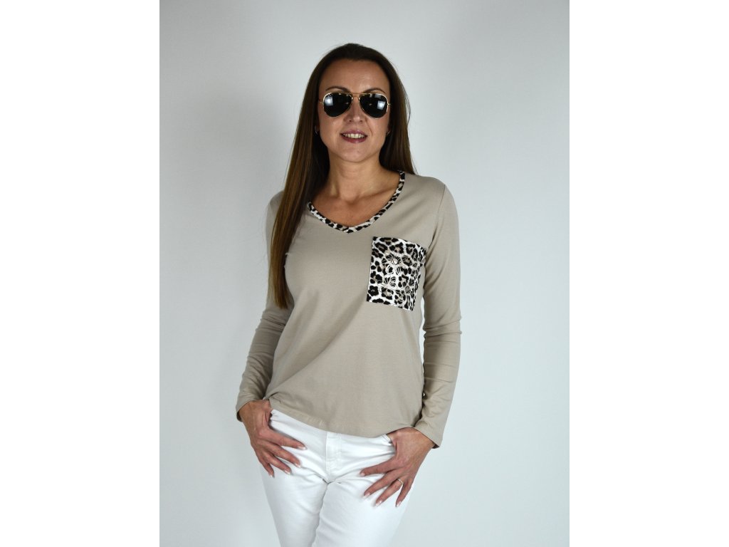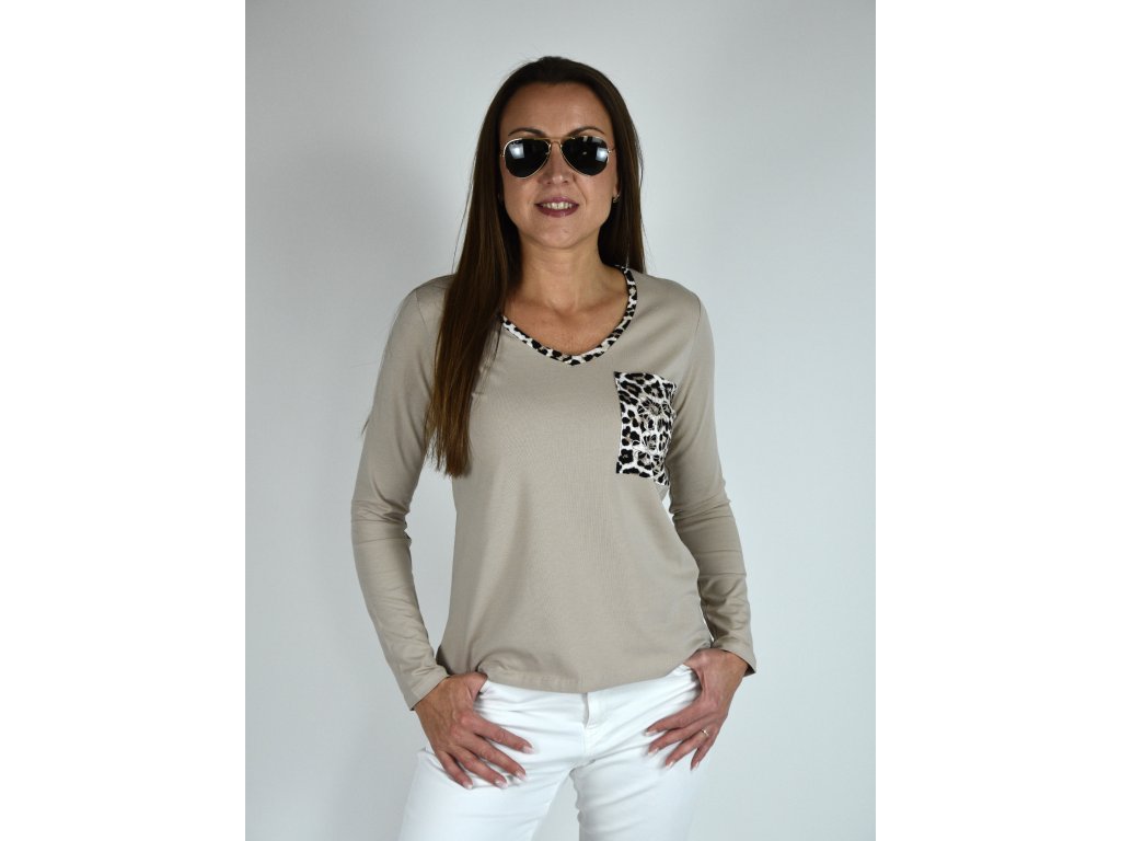 Béžové tričko s kapsičkou LaTynka, dlouhý rukáv 0410