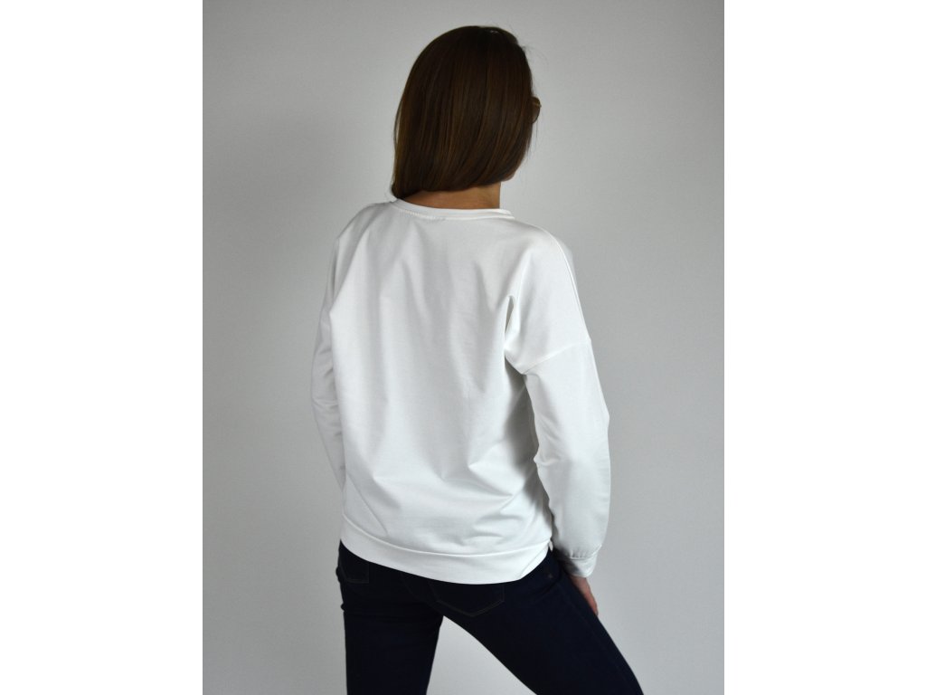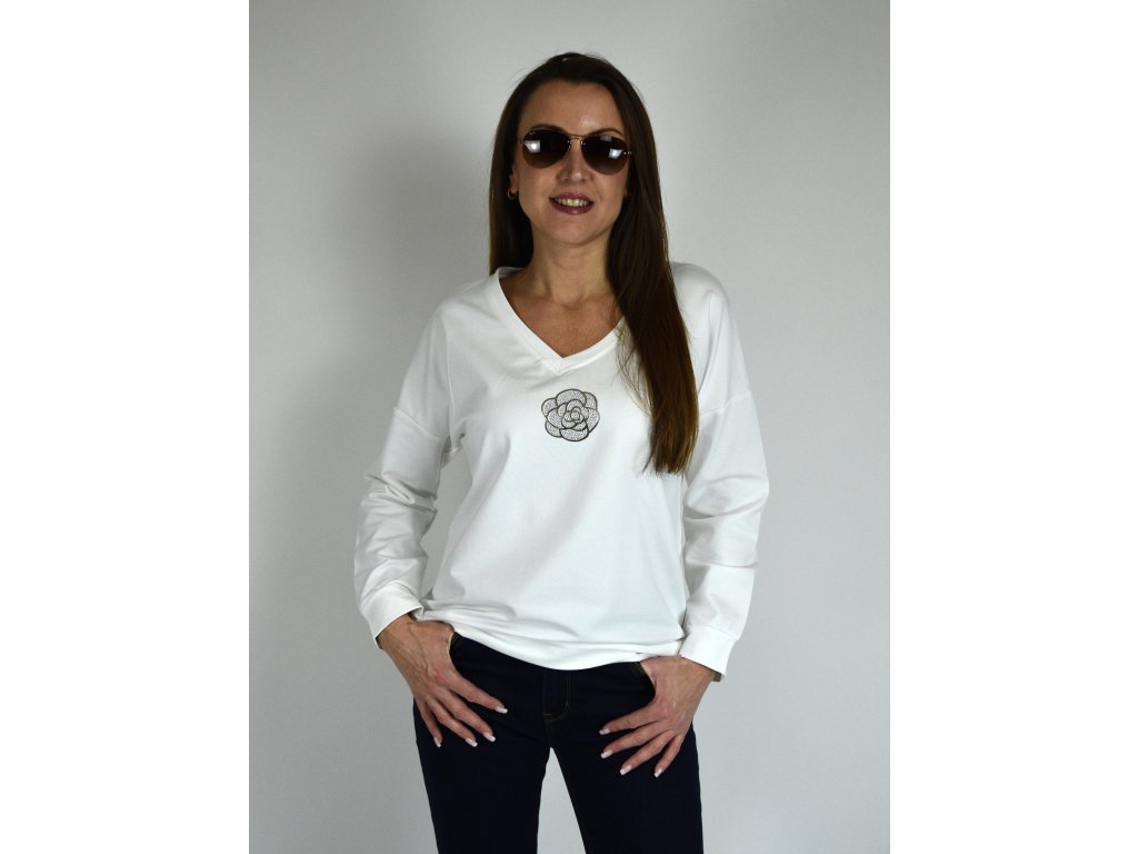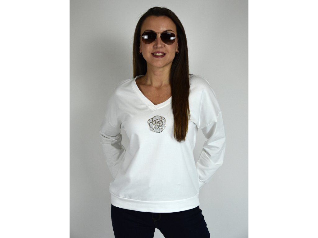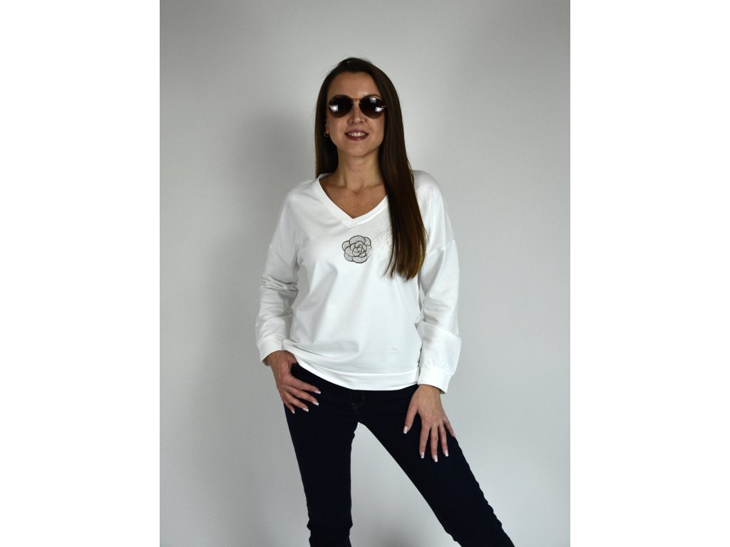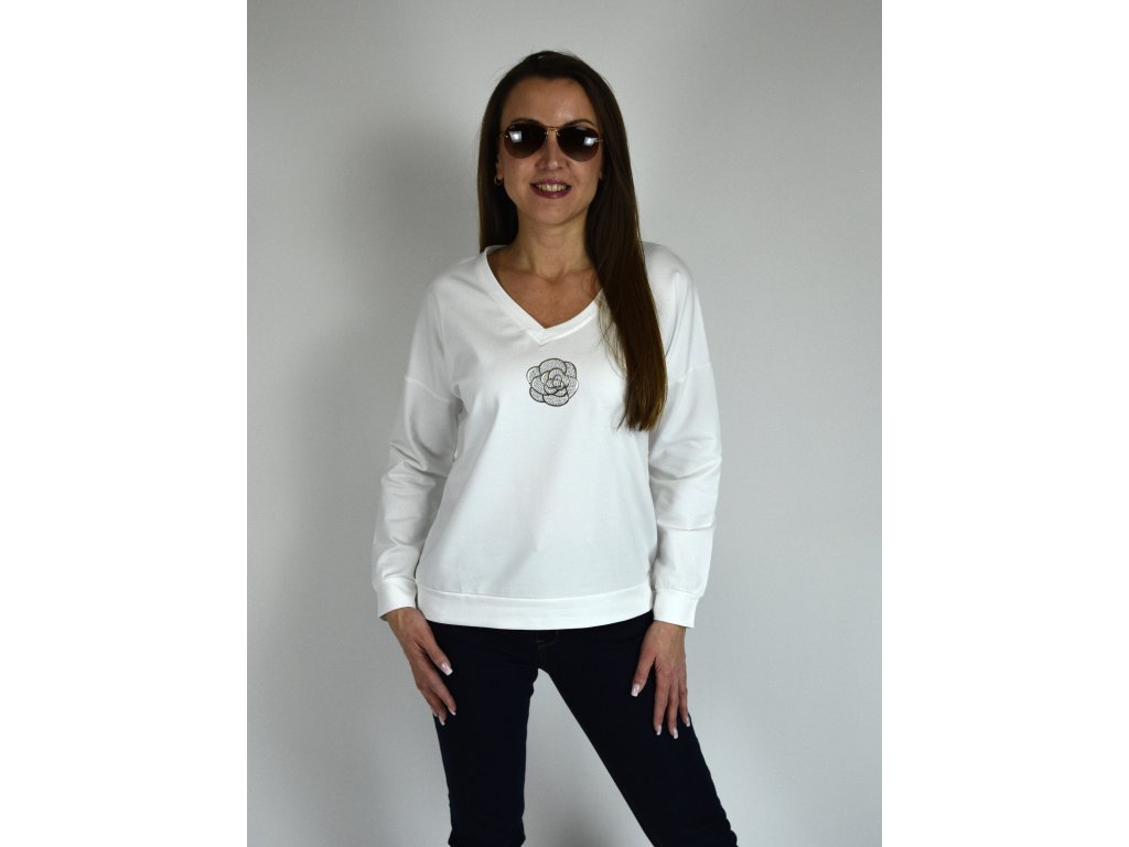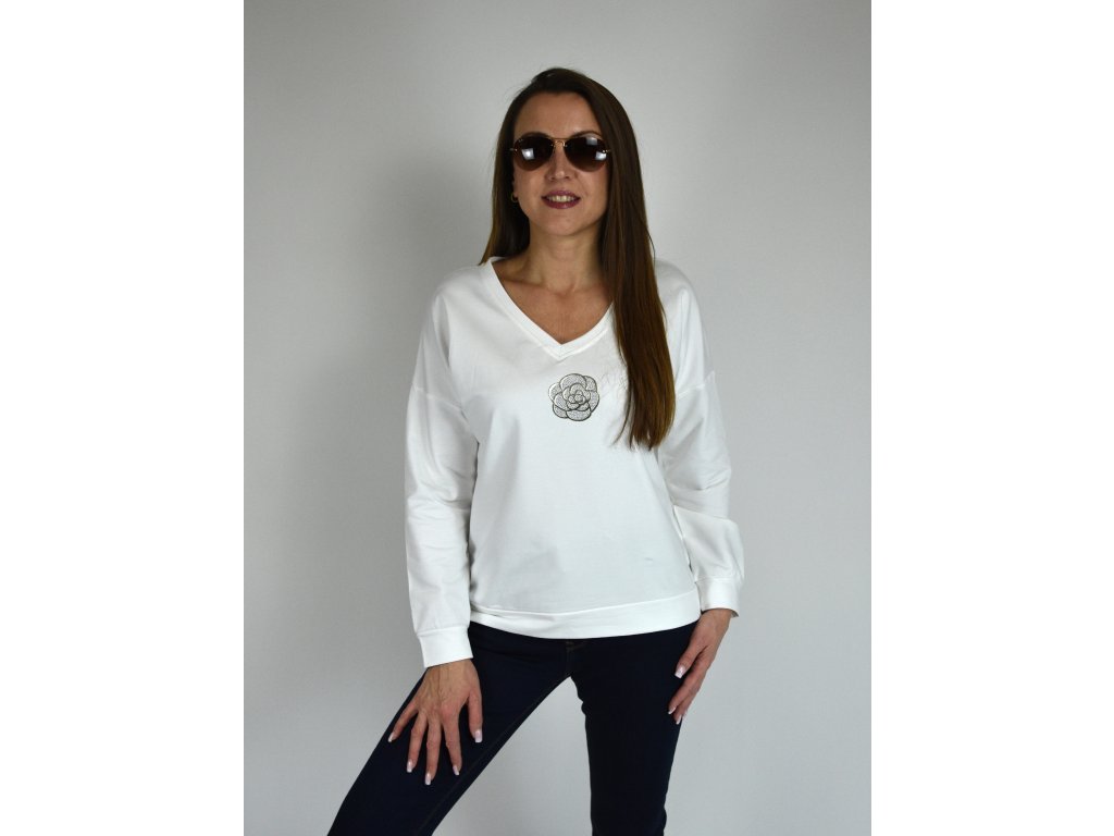 Bílá mikina s véčkovým výstřihem a květinou Megi B2551