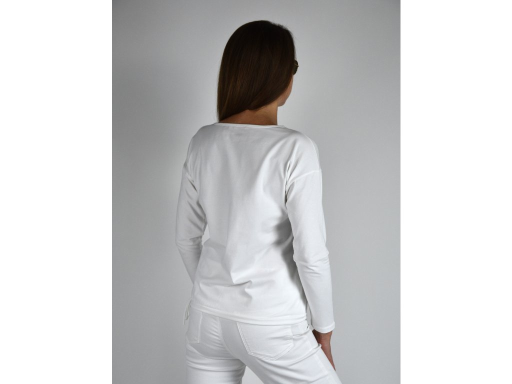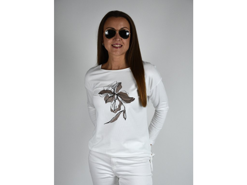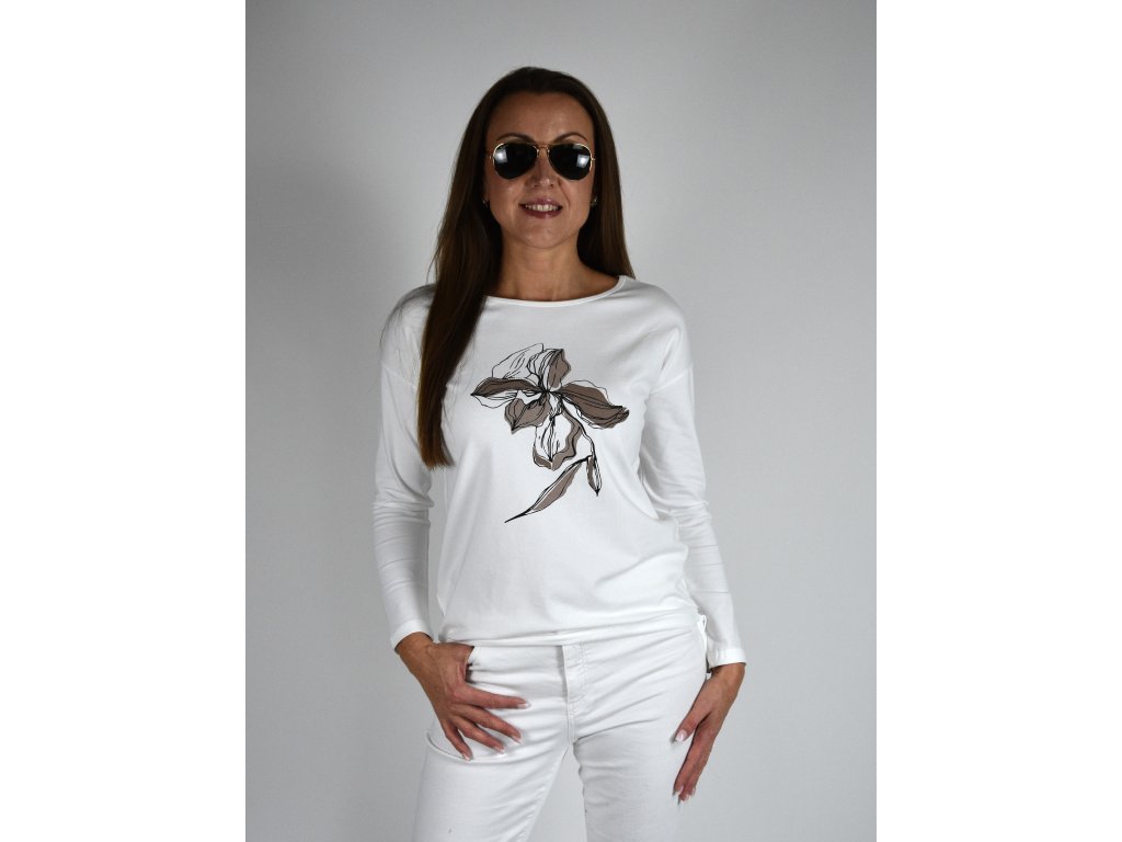 Bílé tričko s dlouhým rukávem LaTynka, květina 0419