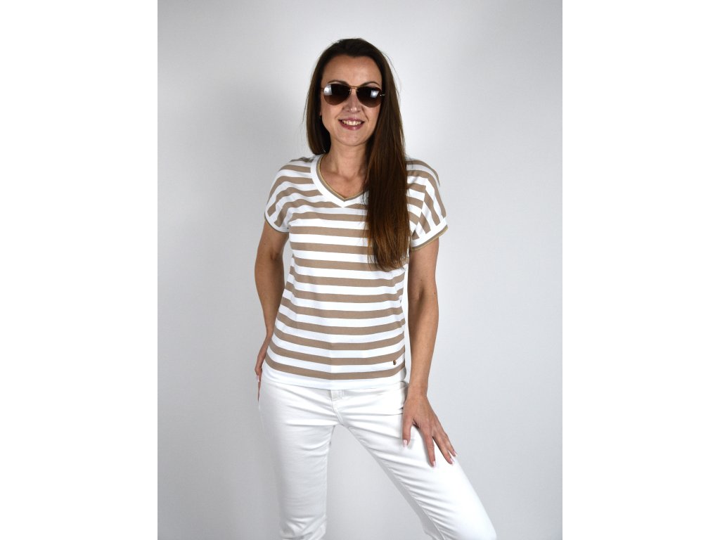 Bílé tričko s krátkým rukávem Megi, hnědé proužky B1662