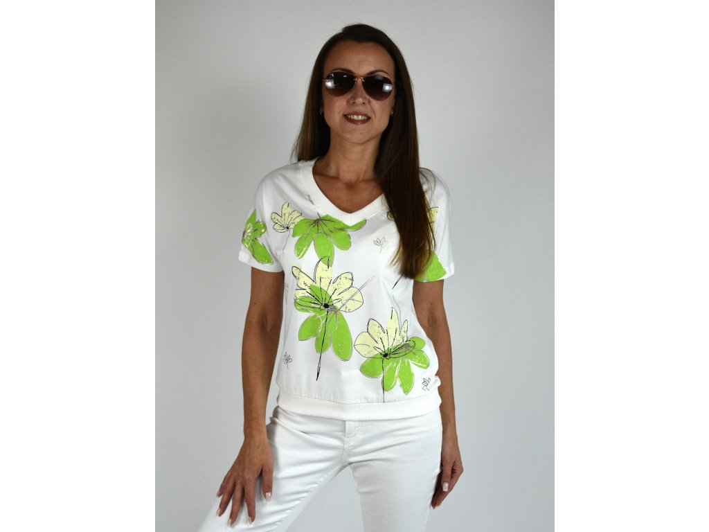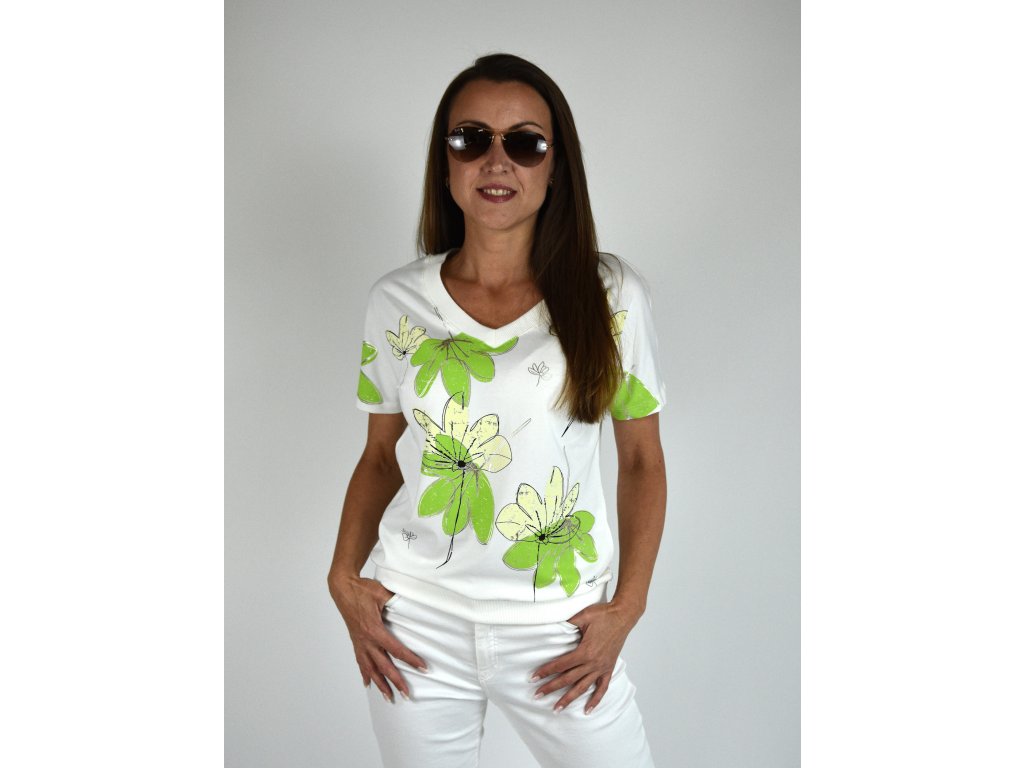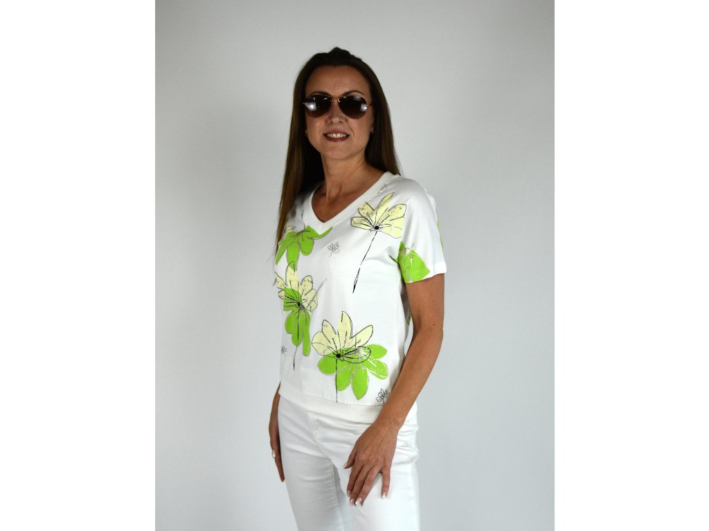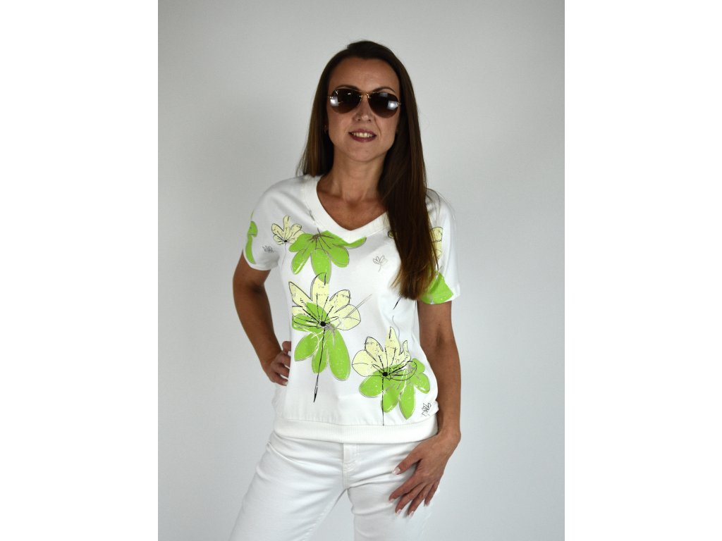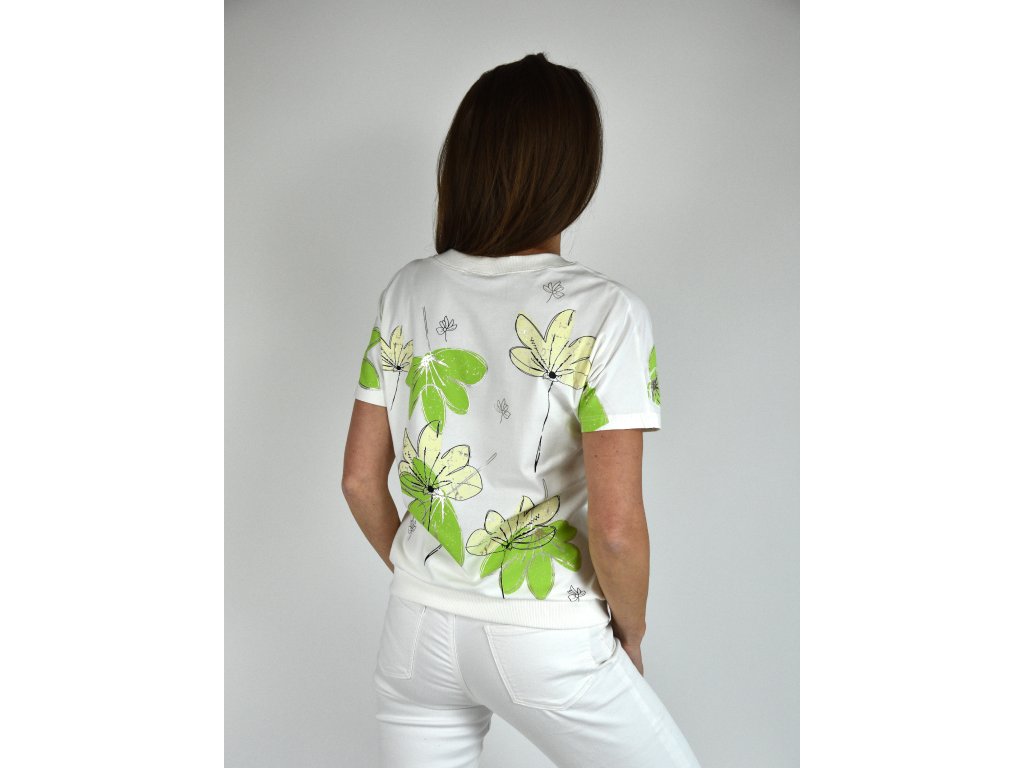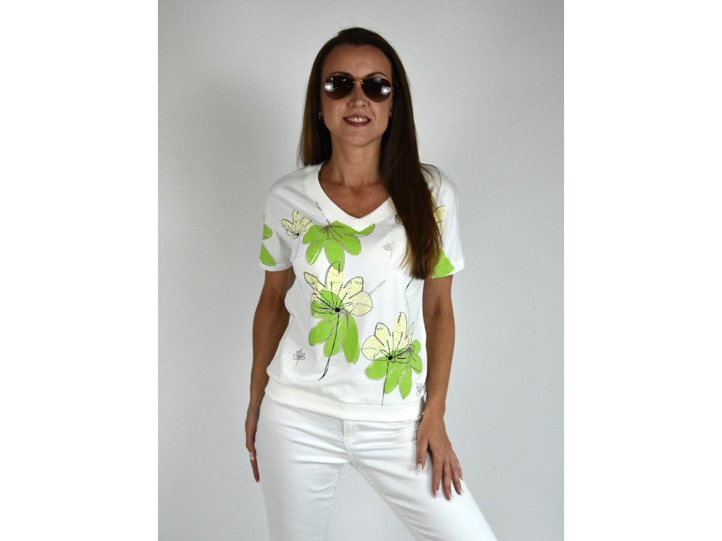 Bílé tričko s potiskem Megi collection, zelené květy