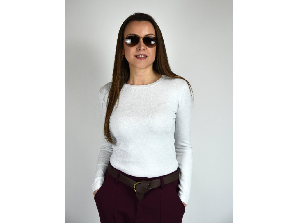 Stylový a pohodlný svetr, který přináší volnost pohybu a moderní vzhled. Elegantní svetr s jemným stříbrným třpytem.