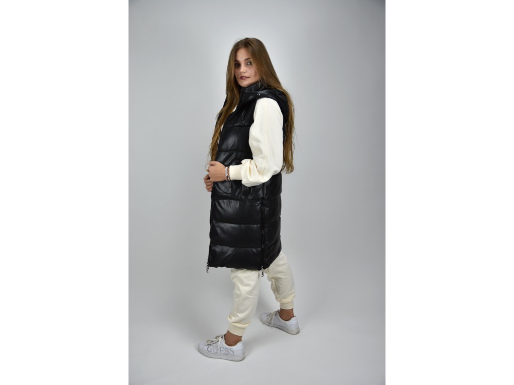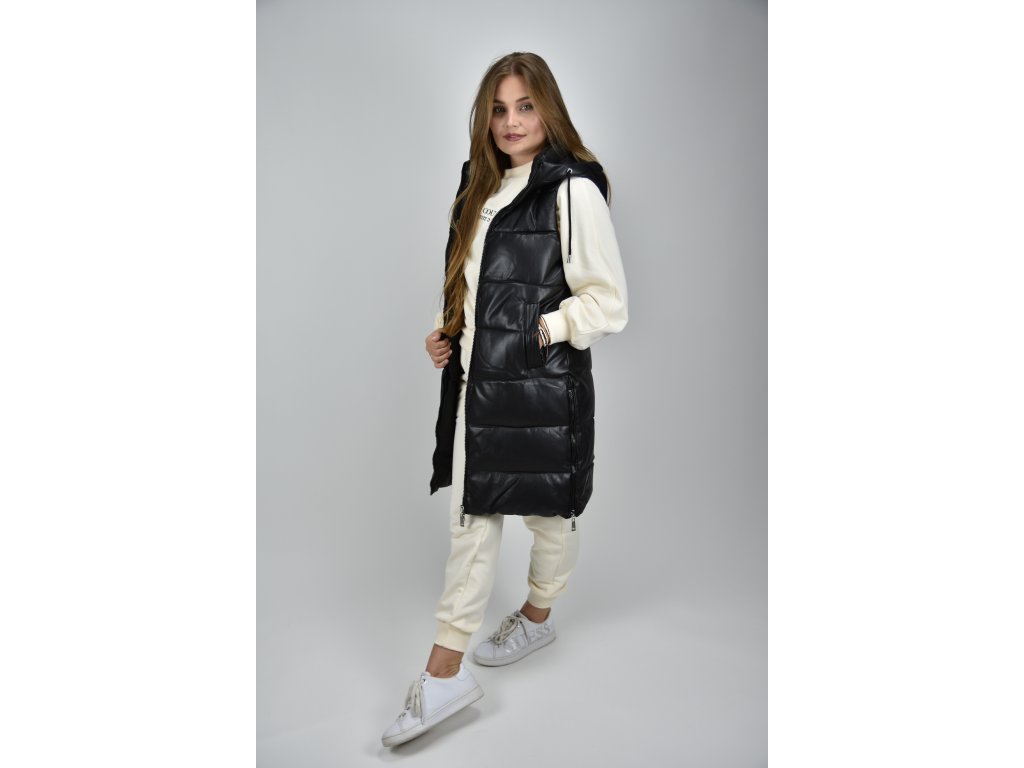 Černá dlouhá vesta se zipem a kapucí Honey Winter