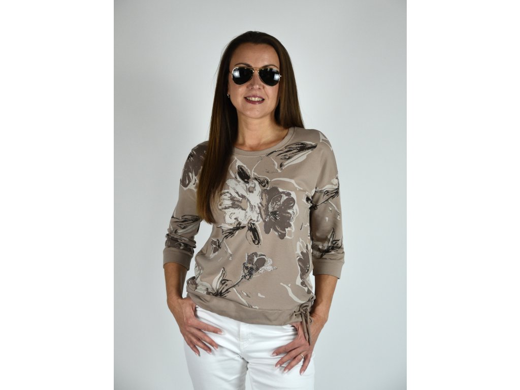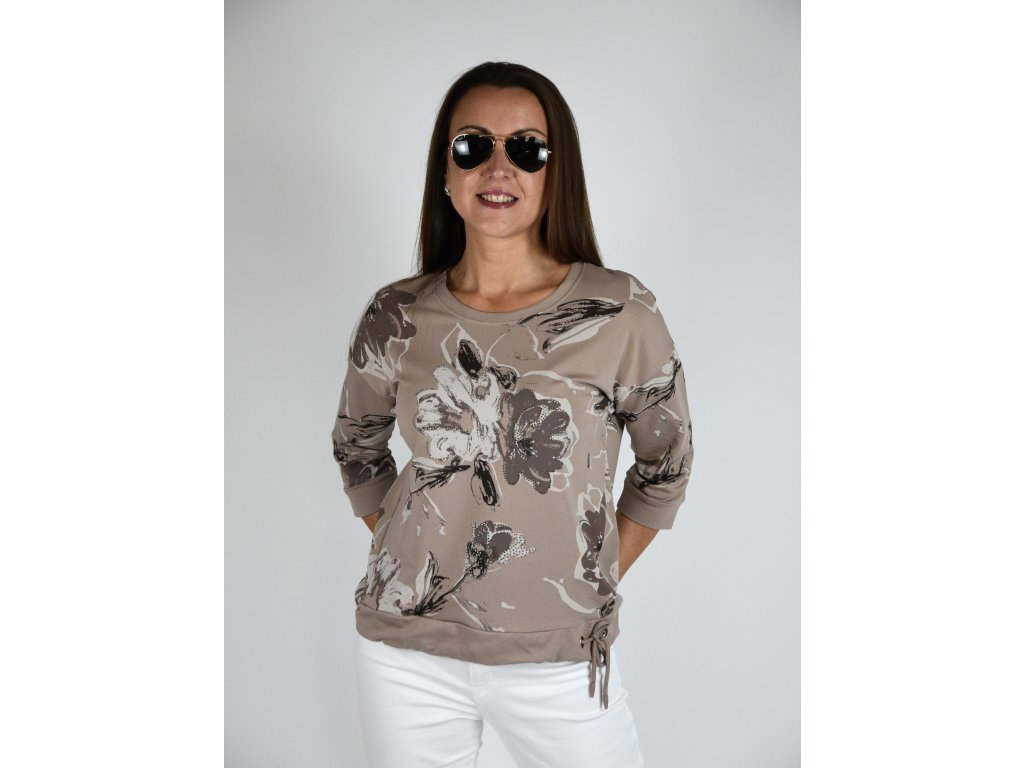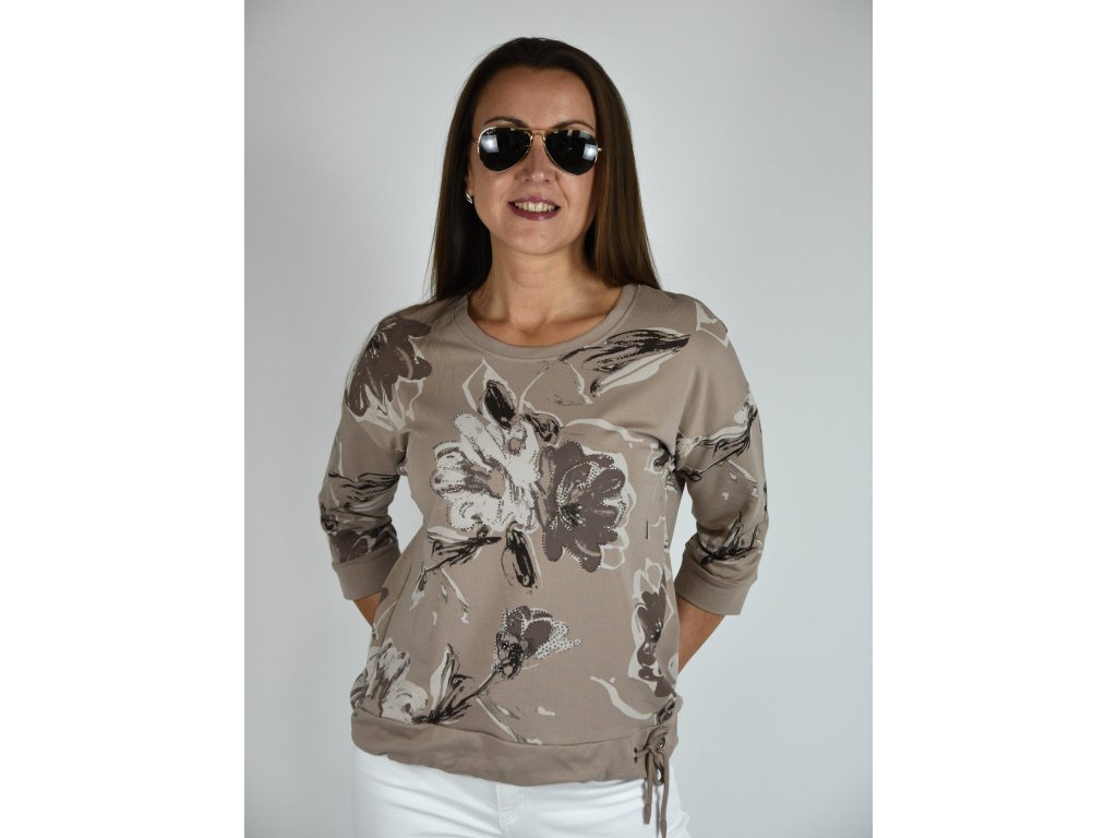 Hnědá mikina s motivem květin Megi B2105
