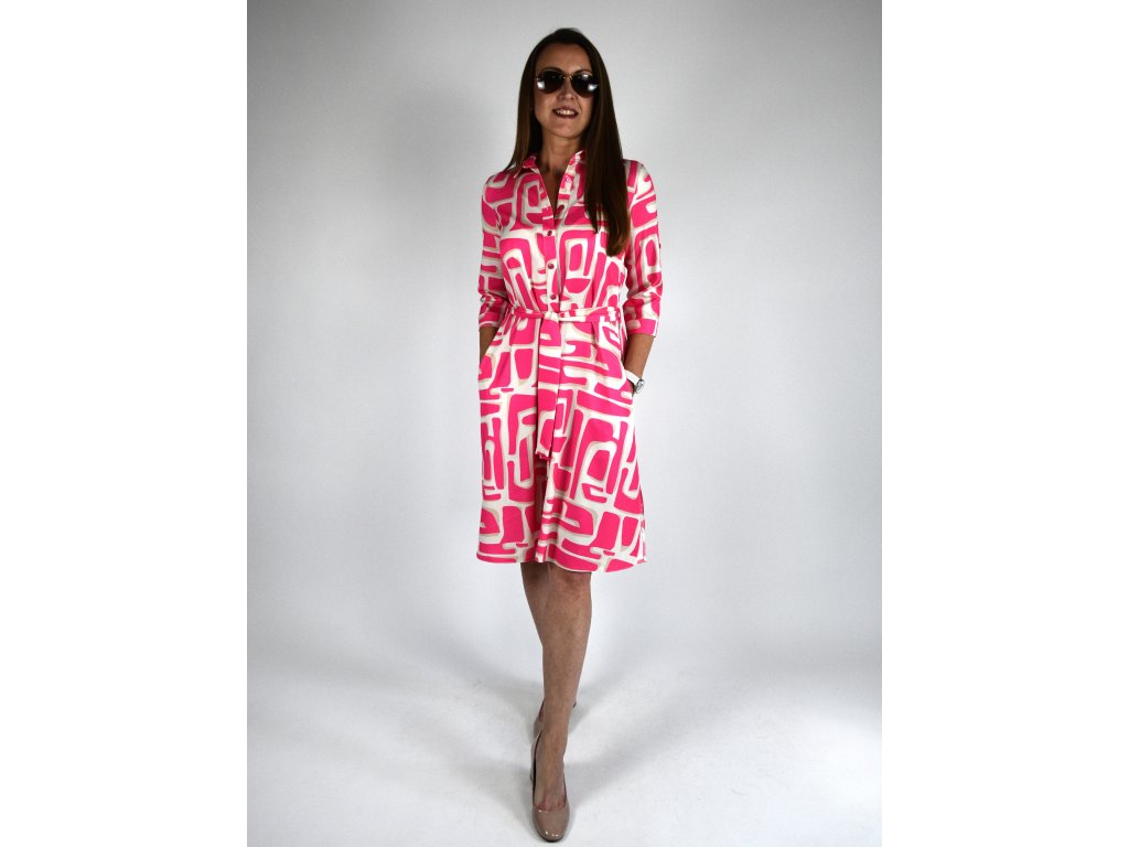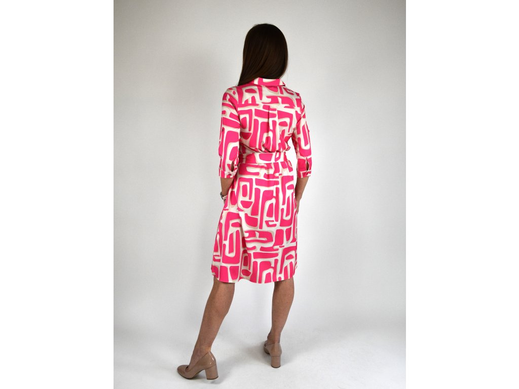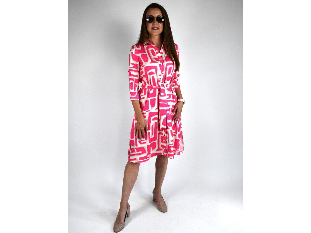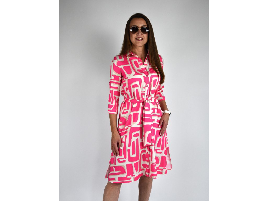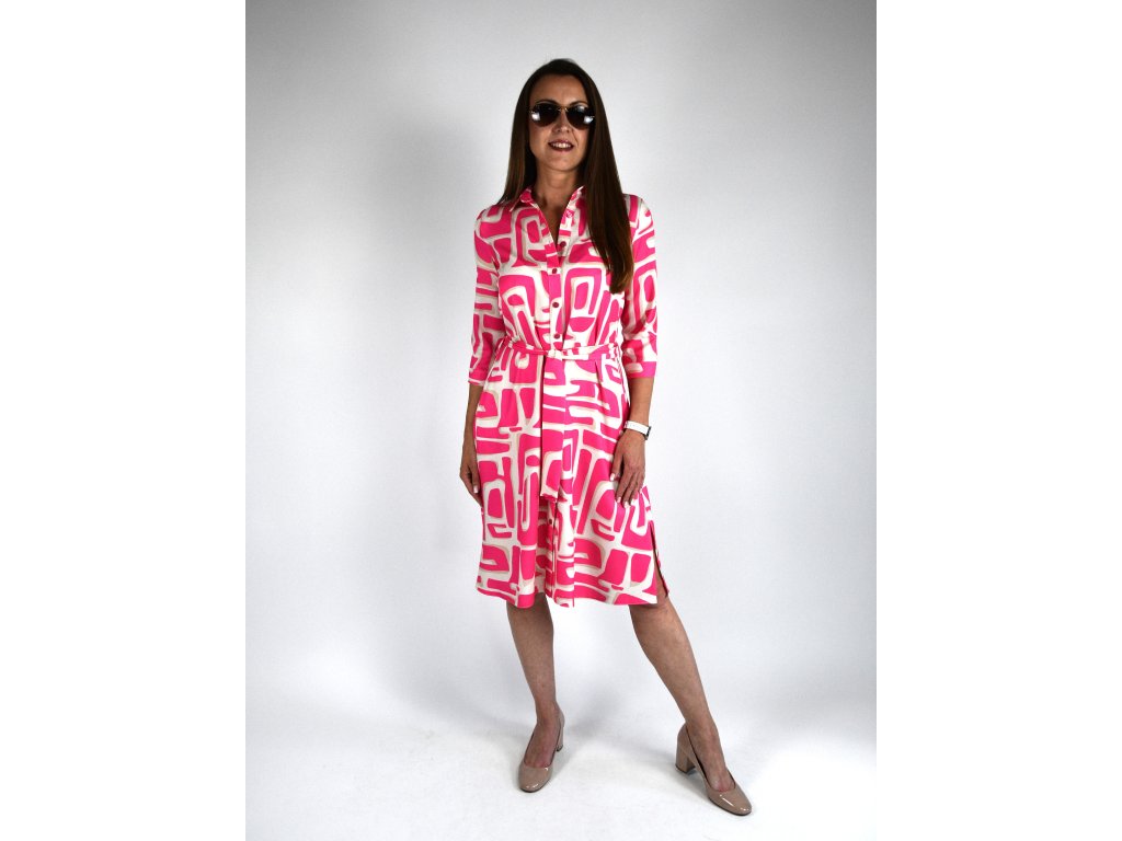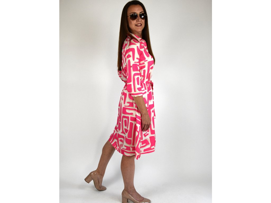 Košilové šaty s 3/4 rukávem a páskem, růžová, béžová