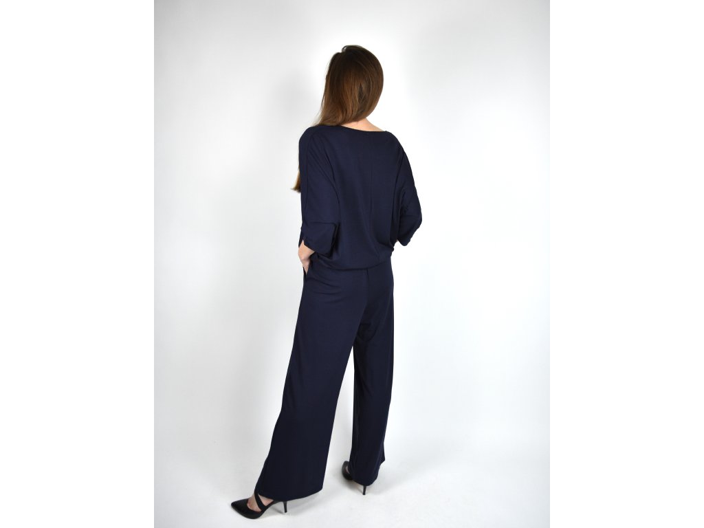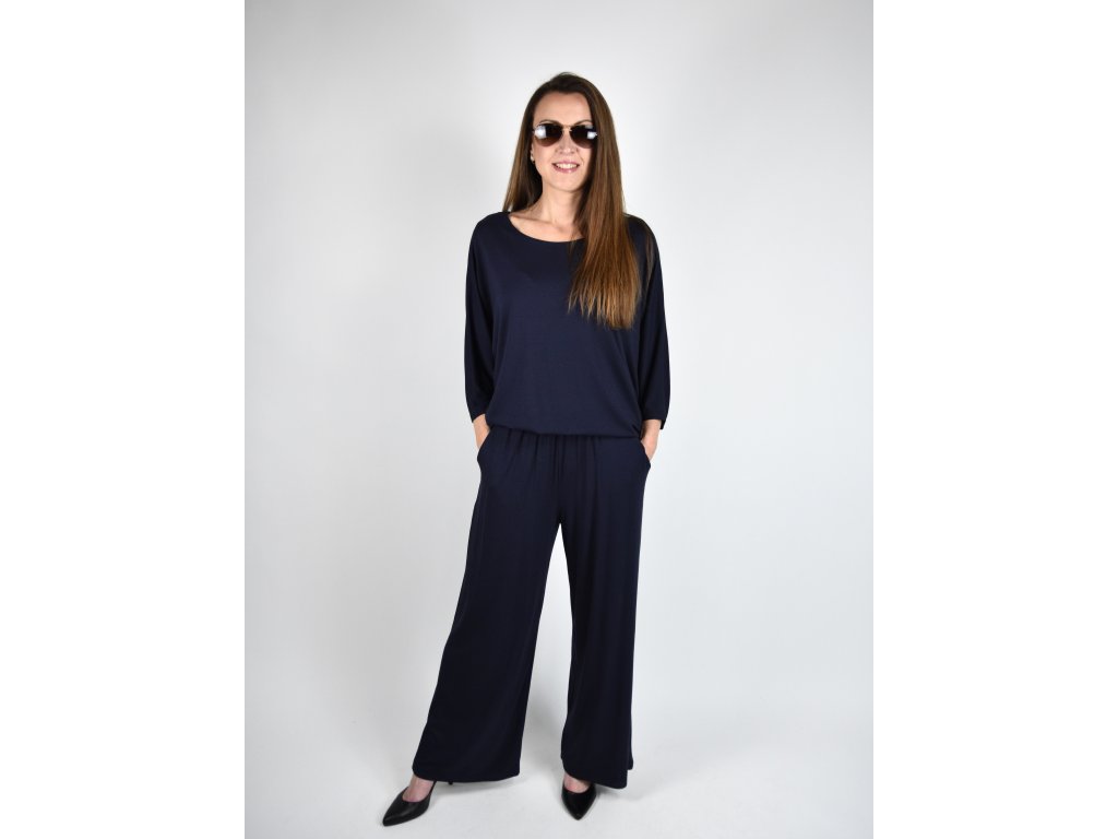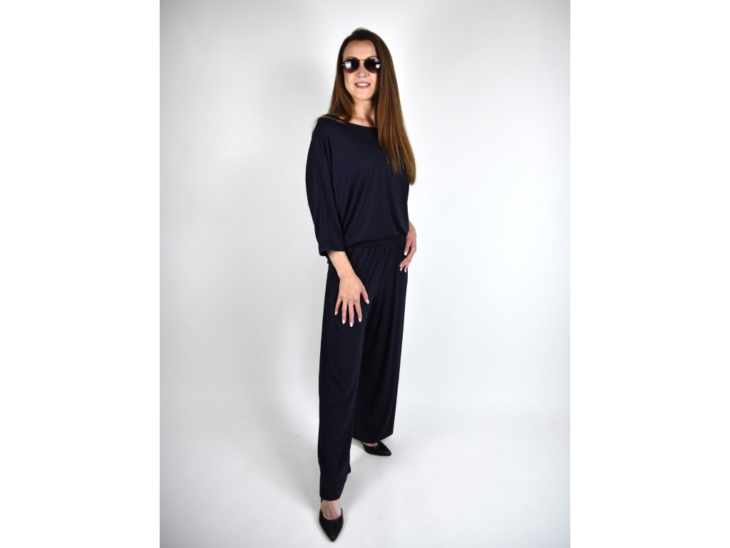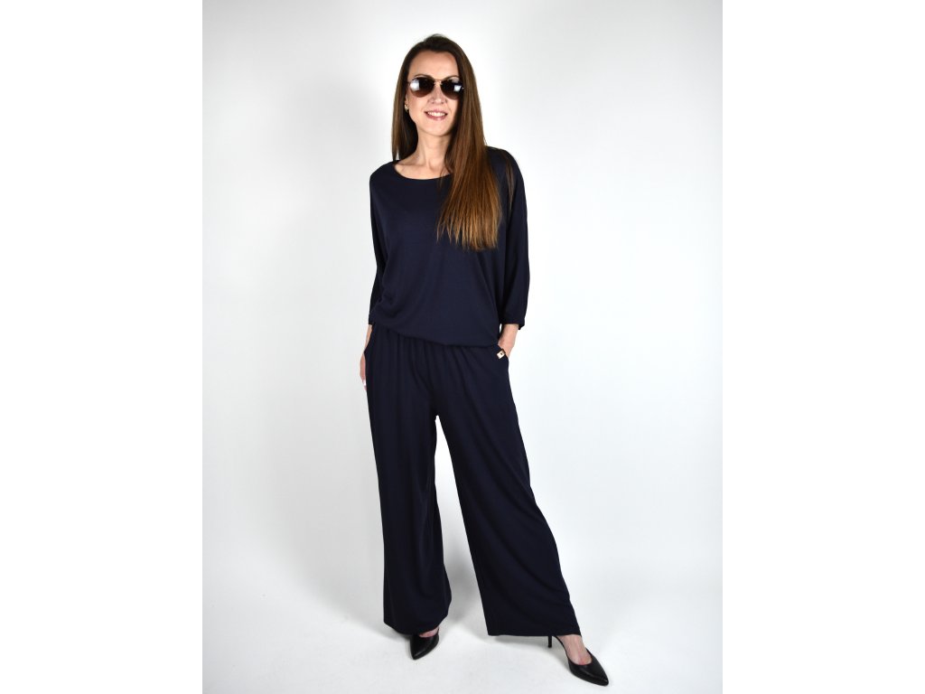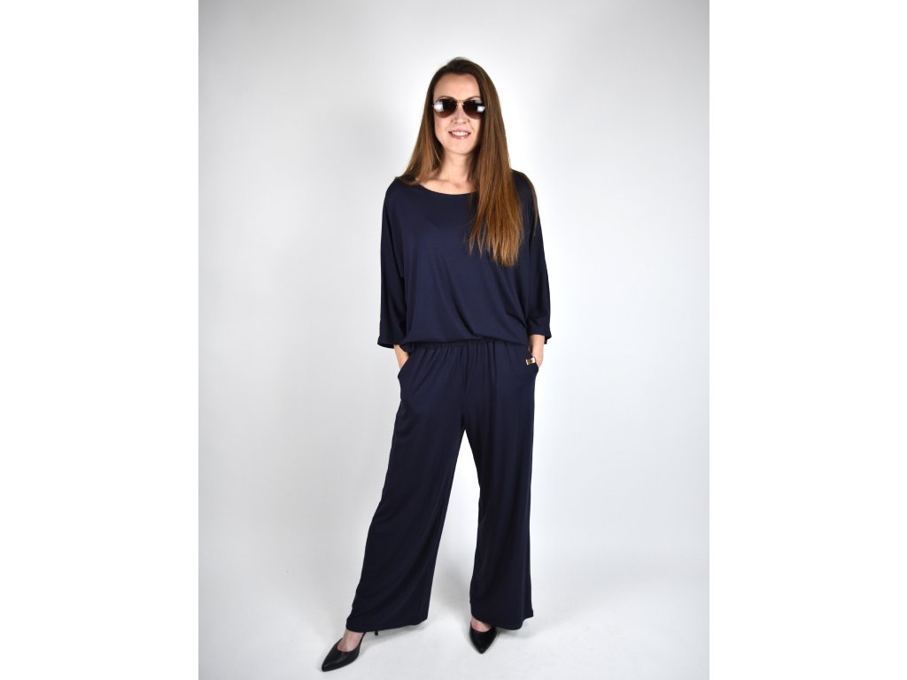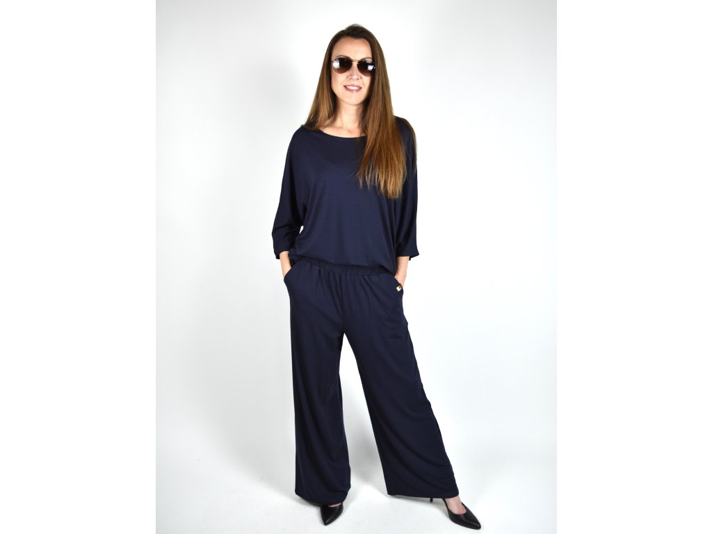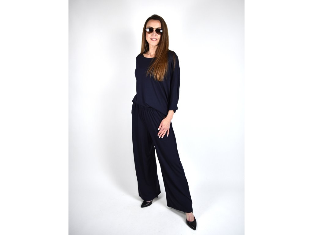 Tmavě modrý dámský komplet halenky a kalhot Trend